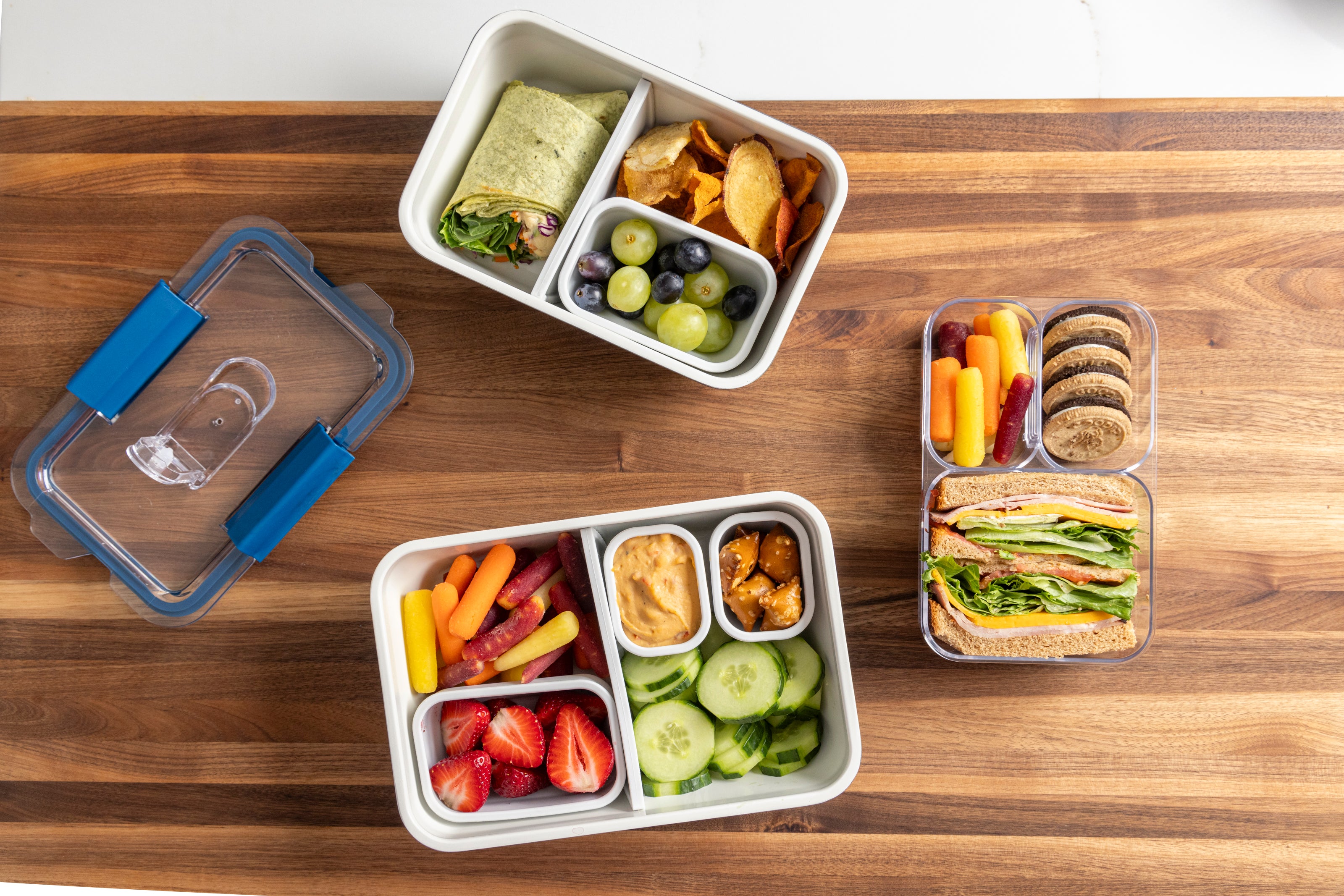 1. Our Prep & Store Sets are made of USA sourced Tritan plastic and topped with leakproof silicone lids.