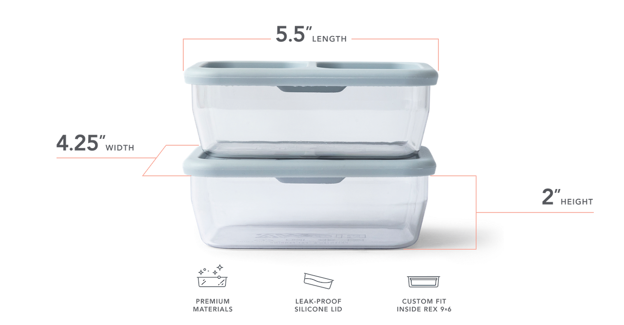 REX "Open" insert containers are constructed with premium & sustainable materials and designed to fit seamlessly inside the REX 9x6 Travel Lunch Box.